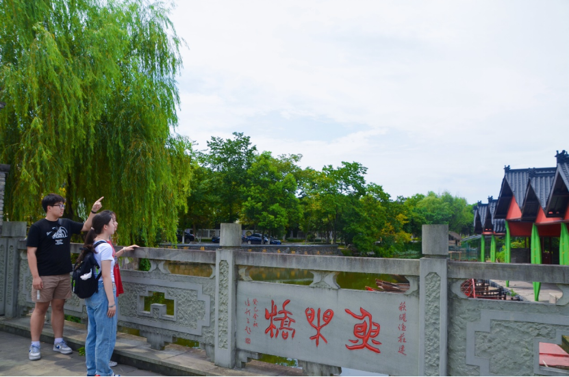 2023年7月12日早上八时,千年一“渔”暑期社会实践团前往湖州市南浔区和孚村荻港渔庄,在富有渔文化元素的桥上参观“摇摇渔舟”水上项目。