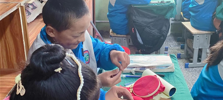 为了加深小朋友们的印象,也为了让这次活动更加有趣。实践团成员们带来了帆布袋、蜡笔、剪刀、胶布等可以让小朋友们自己亲自动手操作,做一个属于她们自己的环保购物帆布袋。不一会,一个个色彩斑斓、奇思妙想的帆布袋出现在了眼前。小朋友们对于她们的作品也非常的骄傲。最后大家一起与独一无二的帆布袋一起合影留念,这是一段特殊的旅行、奇妙的记忆。