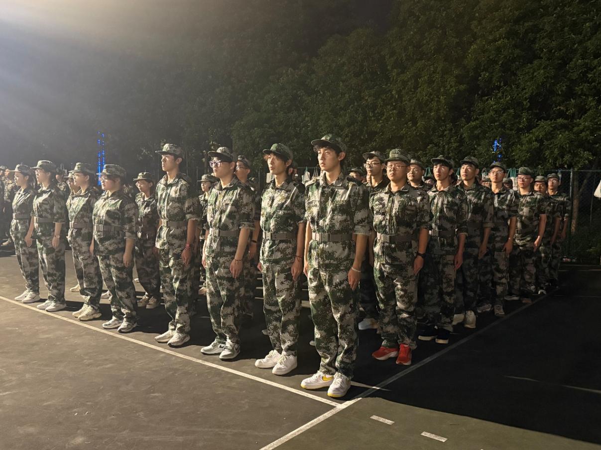 夜幕低垂,同学们身着迷彩军装,在训练场上挺拔站立。夜色中他们眼神坚毅如炬,身姿笔直似松,将疲惫化作成长的勋章,在星光与灯光的交辉里,彰显着医学生的纪律与担当,每一分坚持都是对意志的淬炼。