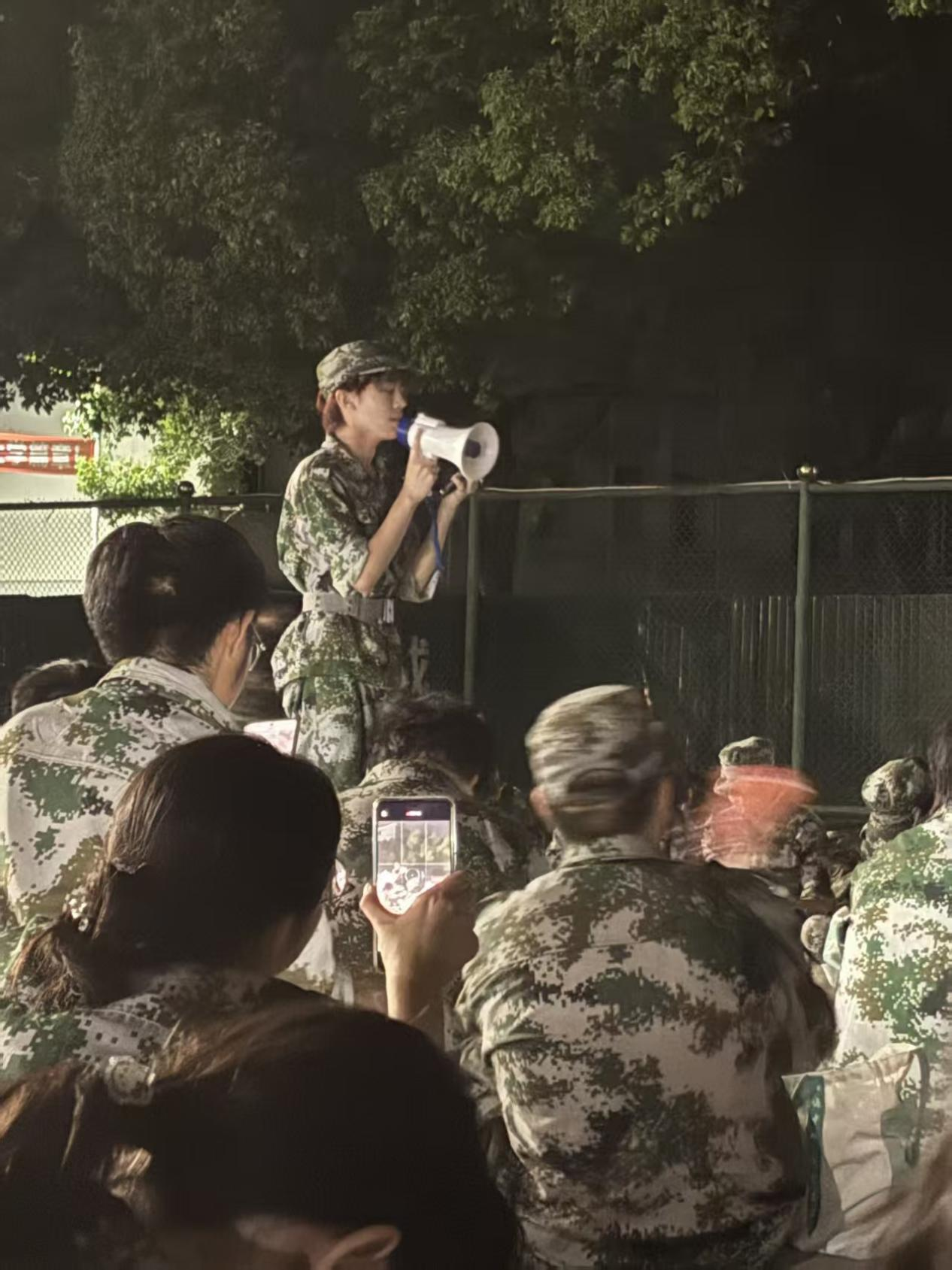 歌声传四方,同济情更长。夜色降临,而军训场灯火通明。不同连队的学生轮番上阵,用掌声与欢呼驱散训练的疲惫,同学们的笑脸是训练场上最暖的光。