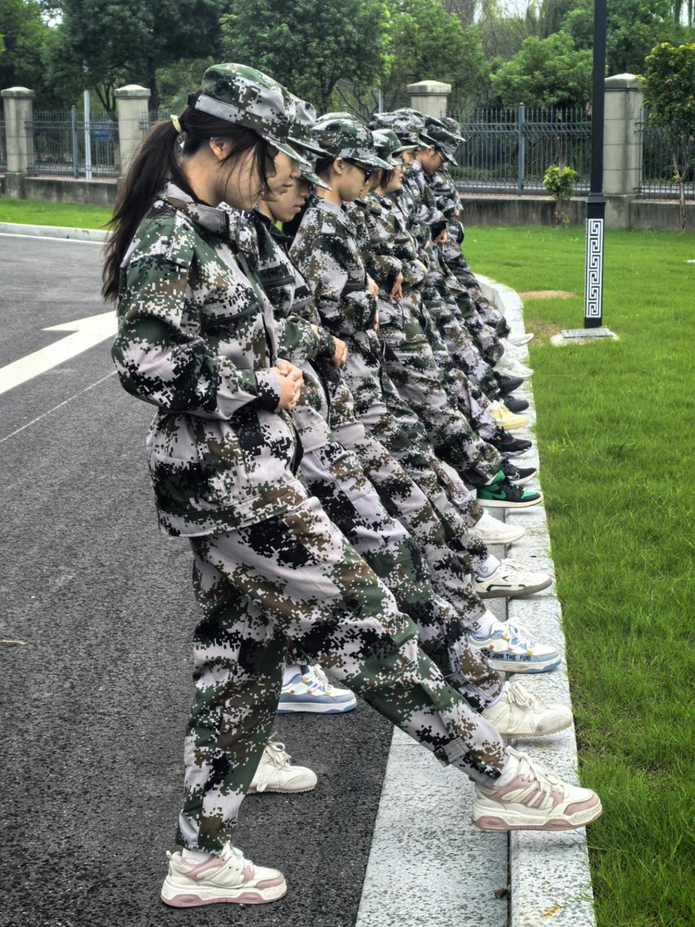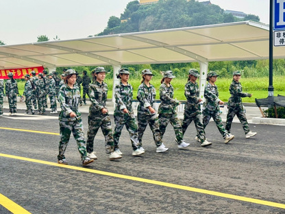 身着迷彩服的教院学子们步履齐整,于道路上把青春凝练成规整的韵脚。专注的眼眸,齐整的步伐,每一步都在为四年的成长篇章积淀能量,远山与横幅为伴,青春的篇章从军训方阵里缓缓拉开帷幕。