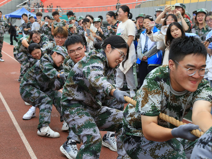 3.在新生拔河比赛现场,马克思主义学院的营旗成为亮眼的助威符号。马院学子紧握旗杆,随着呐喊的节奏铿锵挥舞,每一次摆动都为场内奋力拼搏的参赛队友注入了强劲力量。