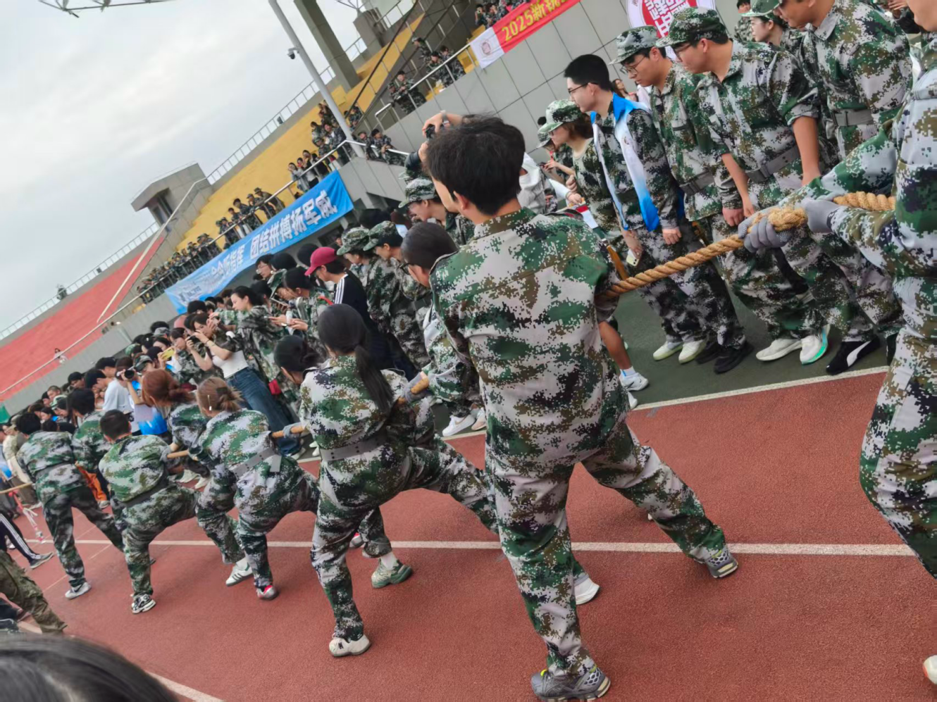 今日下午,我校训练场上呐喊震天,新生军训拔河比赛火热进行。各连队选派精兵强将组成参赛队伍,在赛场上展开力量与意志的较量。