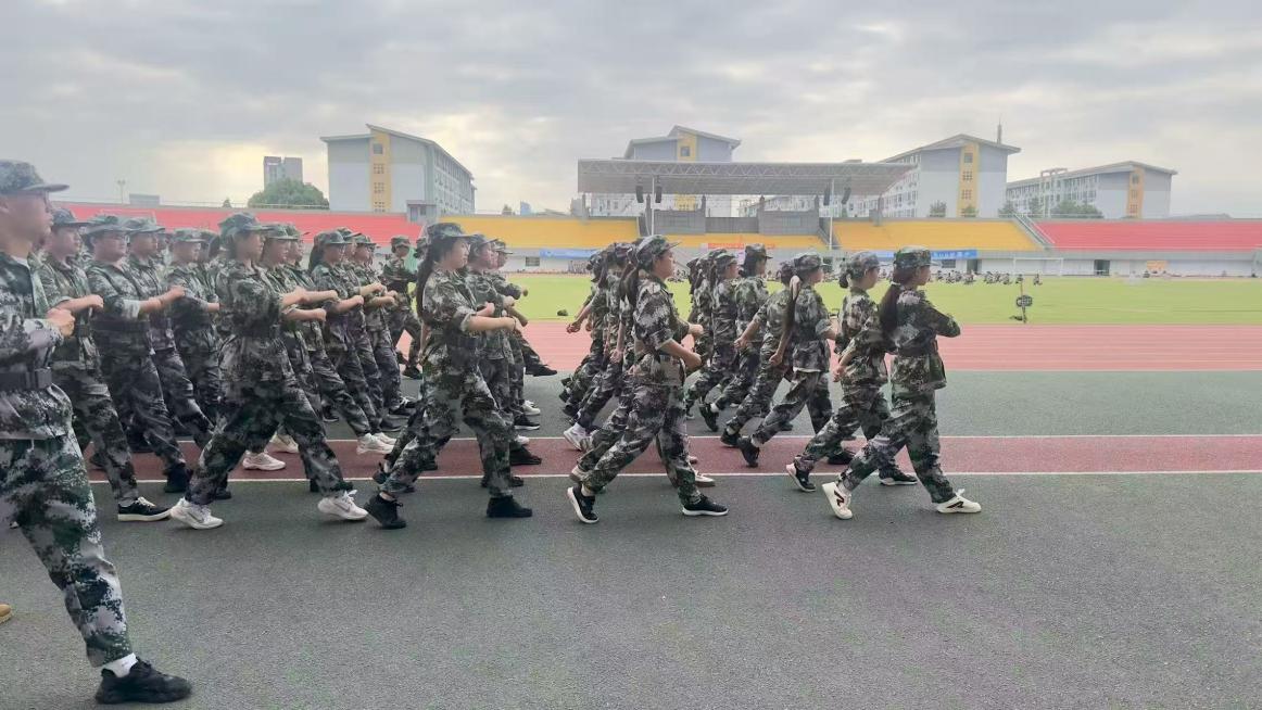 在上午的训练中,持枪方队成为全场焦点。学子们肩扛模拟步枪,在教官口令下完成持枪立正、托枪、持枪齐步等基础动作训练,枪身始终保持平稳,尽显严谨姿态。同时,其他方队重点开展齐步转正步转换练习,从摆臂高度、步幅间距到身体协调性反复打磨,力求每个转体动作精准利落,展现出昂扬的精神风貌。