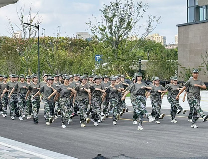 手握匕首,神情坚毅,这是我们教育学院的匕首操连队,匕首操连队由我们学院的女生组成,她们每个人都手持匕首,展现着女性独有的力量,她们坚持不懈,努力将教官教学的每一个动作都练到最好。