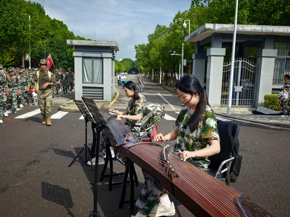 走到中途,队伍里的笑声少了,只剩下沉重的呼吸和整齐的口号。阳光变得灼热,晒得脖子发烫,迷彩服后背早已被汗水浸透,贴在身上黏腻难受。我盯着前面人的背包带,心里默念“再走一百步就休息”,到了休息点,看见医疗组的学长学姐递来的矿泉水,还用音乐为我们加油鼓劲。