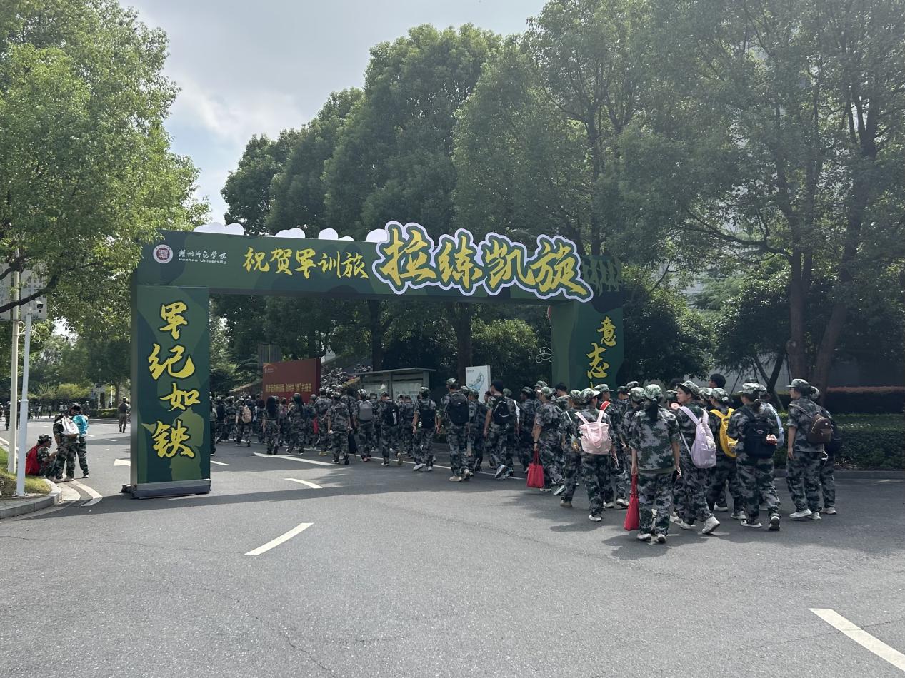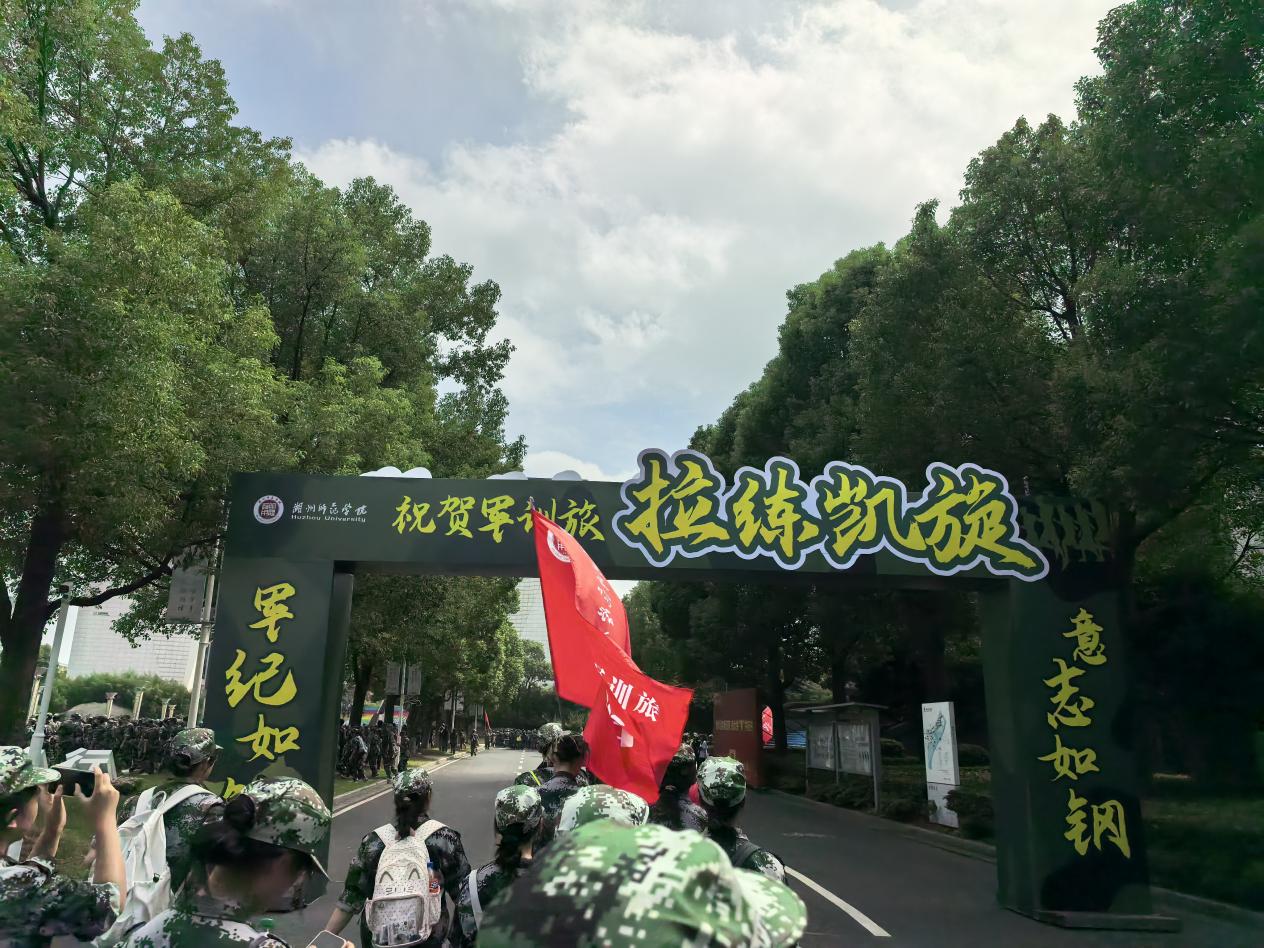 【理学院】【四连】湖州师范学院的道路上,“祝贺军训旅拉练凯旋”的拱门十分醒目,两侧“军纪如铁”“意志如钢”的字样苍劲有力。身着迷彩服的理学院学子们背着行囊,排成整齐的队伍,正有序地通过拱门,宣告着这场磨砺意志的拉练圆满结束。