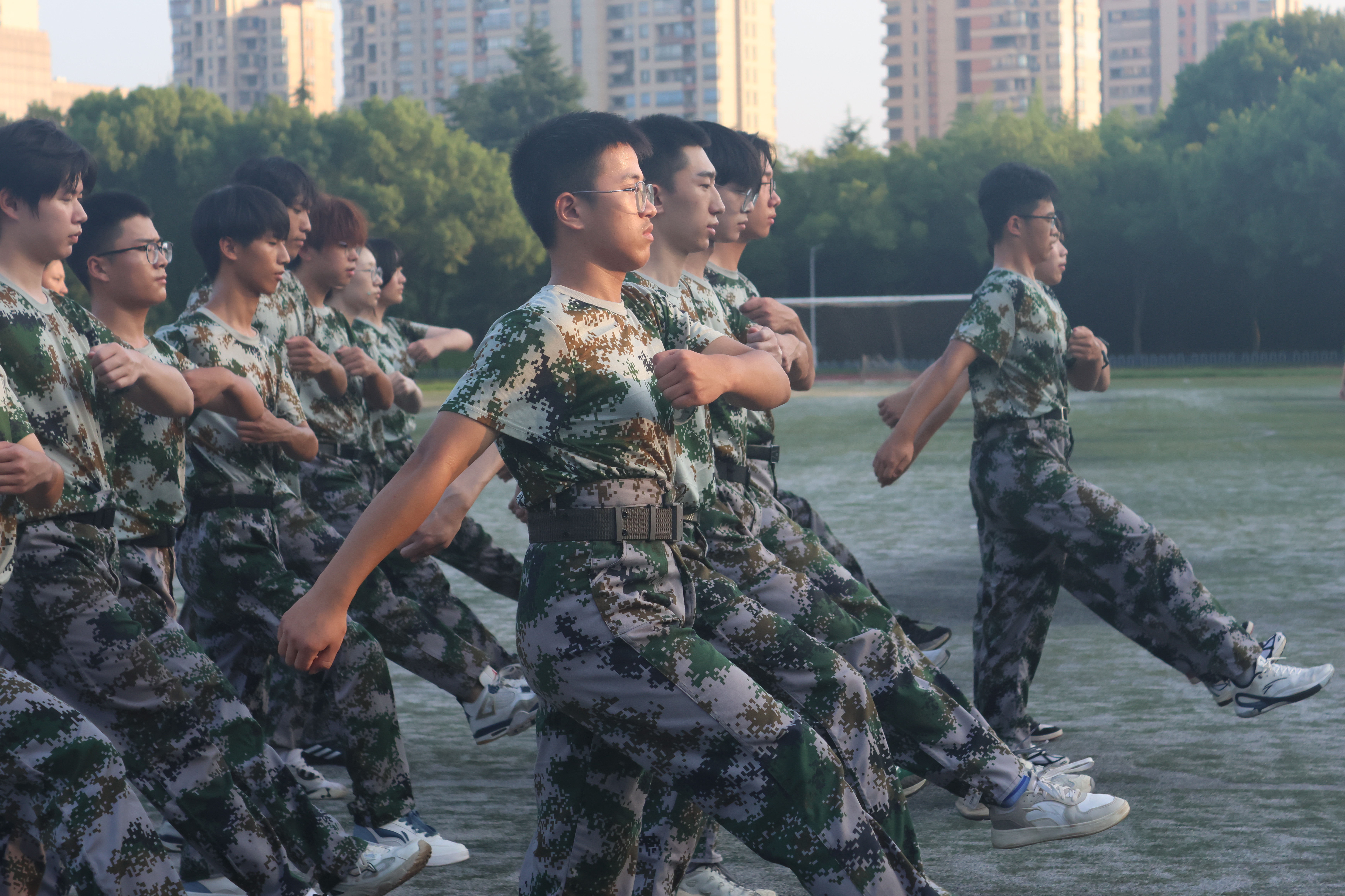 【理学院】【二连】阳光掠过帽檐,照亮坚毅的侧脸;汗水浸透衣背,映射出青春的光泽。绷直的脚尖,有力的摆臂,每一个细节都在诉说着对完美的追求,这是独属于军训场的雕塑之美。
