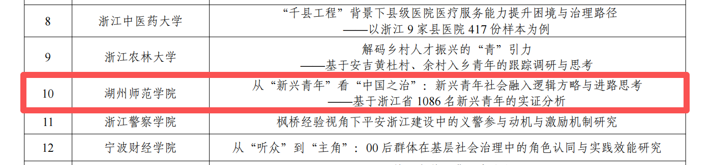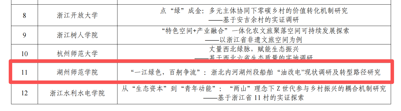 其中,“青听船说”暑期社会实践团聚焦浙北内河船舶“油改电”现状与转型路径,以内河航道湖州段为典型案例,提出构建“航道级能源网络”“三级补能体系”等建议,为内河绿色航运建设提供了可借鉴的实践样本,也为政府进一步出台发展新能源清洁能源船舶相关政策提供有益参考和决策依据。该团队的《“一江绿色,百舸争流”:浙北内河湖州段船舶“油改电”现状调研及转型路径研究》调研报告入选“美丽中国”类别典型案例;“你好,新兴青年”暑期社会实践团基于浙江省千余名新兴青年的实证调研,从“供给侧-需求侧”双重视角系统剖析其社会融入的内在逻辑与优化路径,提出“精准识别—系统响应—长效保障”三位一体治理框架,为新时代新兴青年工作提供了理论参考和实践借鉴。该团队的《从“新兴青年”看“中国之治”:新兴青年社会融入逻辑方略与进路思考——基于浙江省1086名新兴青年的实证分析》调研报告入选“中国之治”类别典型案例。