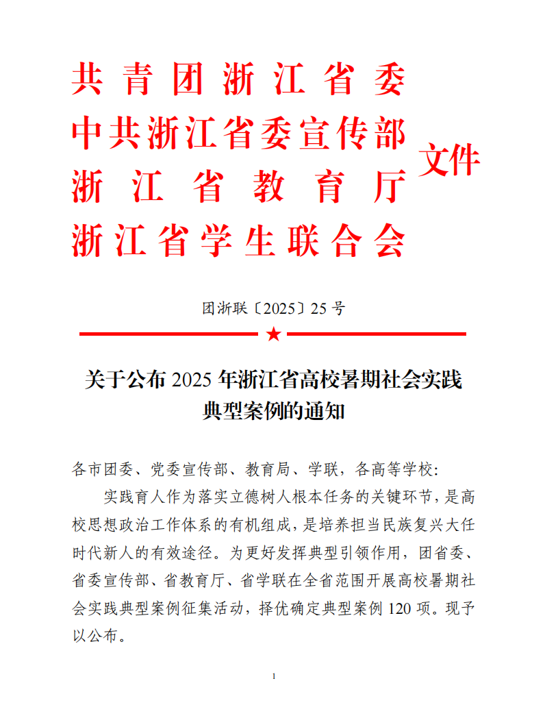 近日,团省委、省委宣传部、省教育厅、省学联公布了2025年浙江省高校暑期社会实践典型案例评选结果,校团委2项调研报告获评“美丽中国”“中国之治”典型案例。