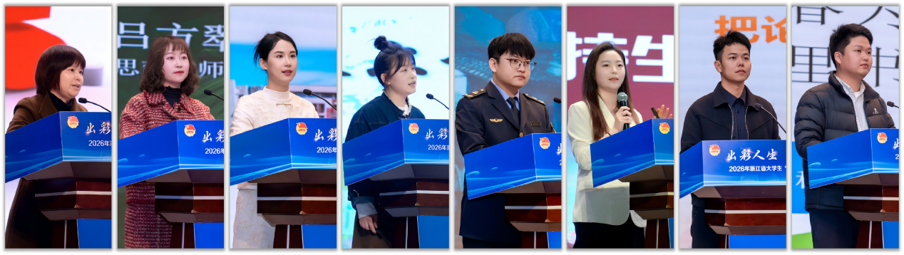 7位校友与1位湖州入乡青年代表分别用自身的择业、就业的真实历程,以及在工作岗位的努力打拼分享了各自的奋斗故事。在“师路传薪·笃教深耕”篇章中,余仙凤、吕方翠、沈兆玥、钱高艺结合自身扎根基层教育一线的成长经历,分享了“好好思考”“低光时刻”“教育让每个生命闪光”“敢上场、肯沉淀”的真实感悟;在“民生引航·践责为民”篇章中,任晓瑞分享了他从校青志总站负责人、2022年省内计划志愿者到基层执法干部身份的蜕变之路。在“职场指路·实干进阶”篇章中,刘伯宇分享了保持学习力、倾听内心声音的重要性。在“青年入乡·创享未来”篇章中,沈钻专、倪程分享展现了新时代青年扎根乡村、逐梦田野的青春风采。活动现场还聘任八位宣讲嘉宾担任我校“大学生就业引航导师”。
